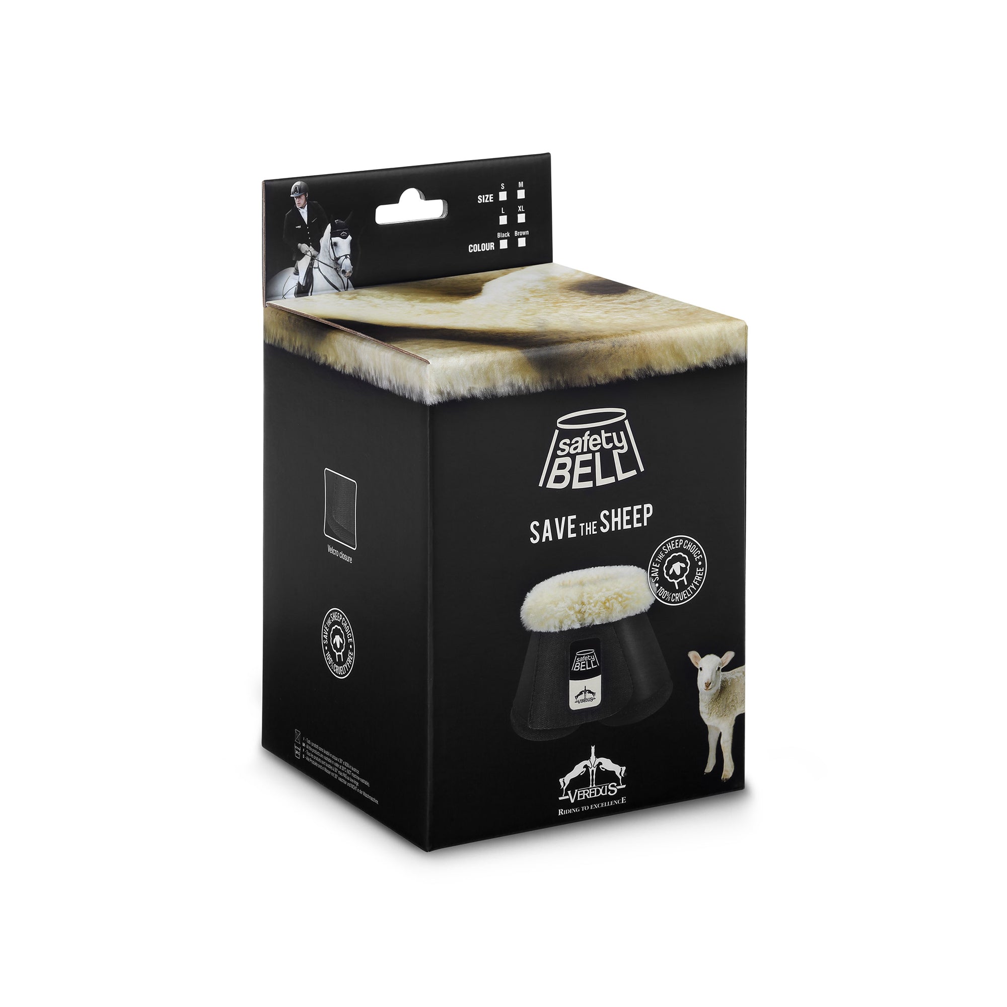 The front heel bulbs are one of the most delicate part of the horse and often, especially on the landing phase of the jump, they can be 'reached' by the hind shoe. Safety-Bell effectively protects the heel bulbs from accidental impacts. The techno sheepskin fabric, sewn into the upper part of the protection helps prevent rubbing or irritation on the most sensitive skin.