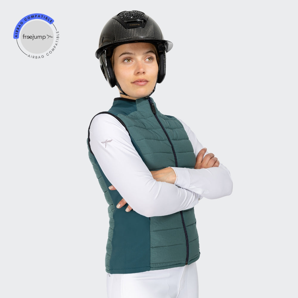 The Kloé sleeveless down jacket is designed to meet the needs of demanding riders. Meticulously crafted from the finest materials and with thoughtful design elements, this jacket is essential all year round. Its ingenious construction provides warmth while allowing air circulation.